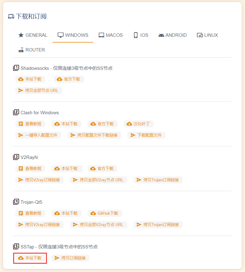 登录 番茄花园 ,在 用户中心 选择 Windows 标签,找到 SSTap 下载